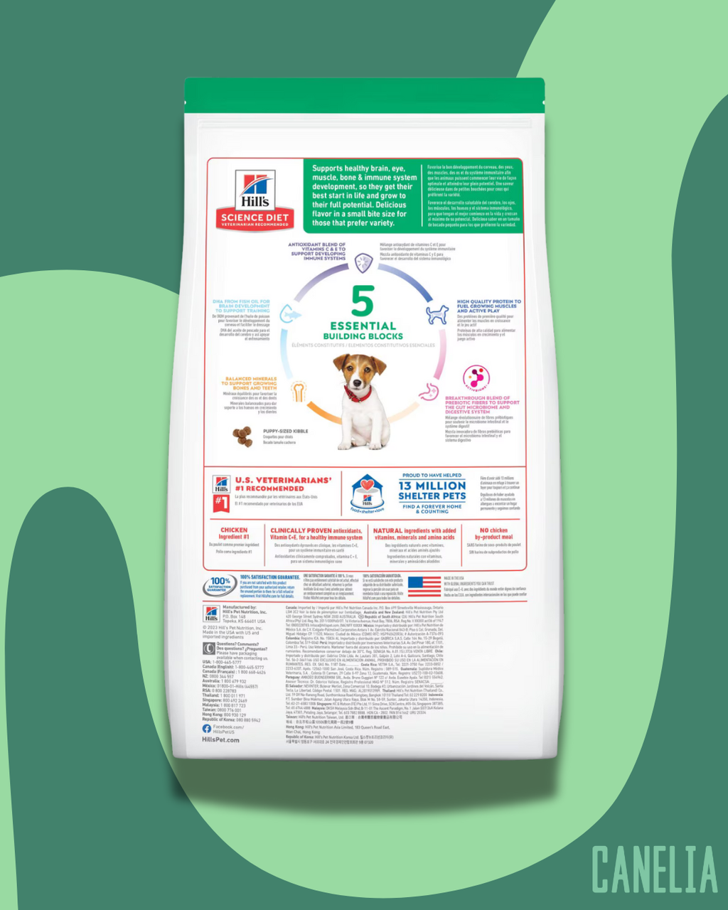 Hill's Science Diet Puppy Small Bites es un alimento seco con un sabor irresistible, elaborado cuidadosamente con nutrientes esenciales que apoyan cinco aspectos clave de la salud a lo largo de la vida. Proporciona a los cachorros un inicio óptimo y favorece que alcancen todo su potencial de crecimiento. Su deliciosa presentación en croquetas pequeñas resulta ideal para quienes prefieren esta variedad.